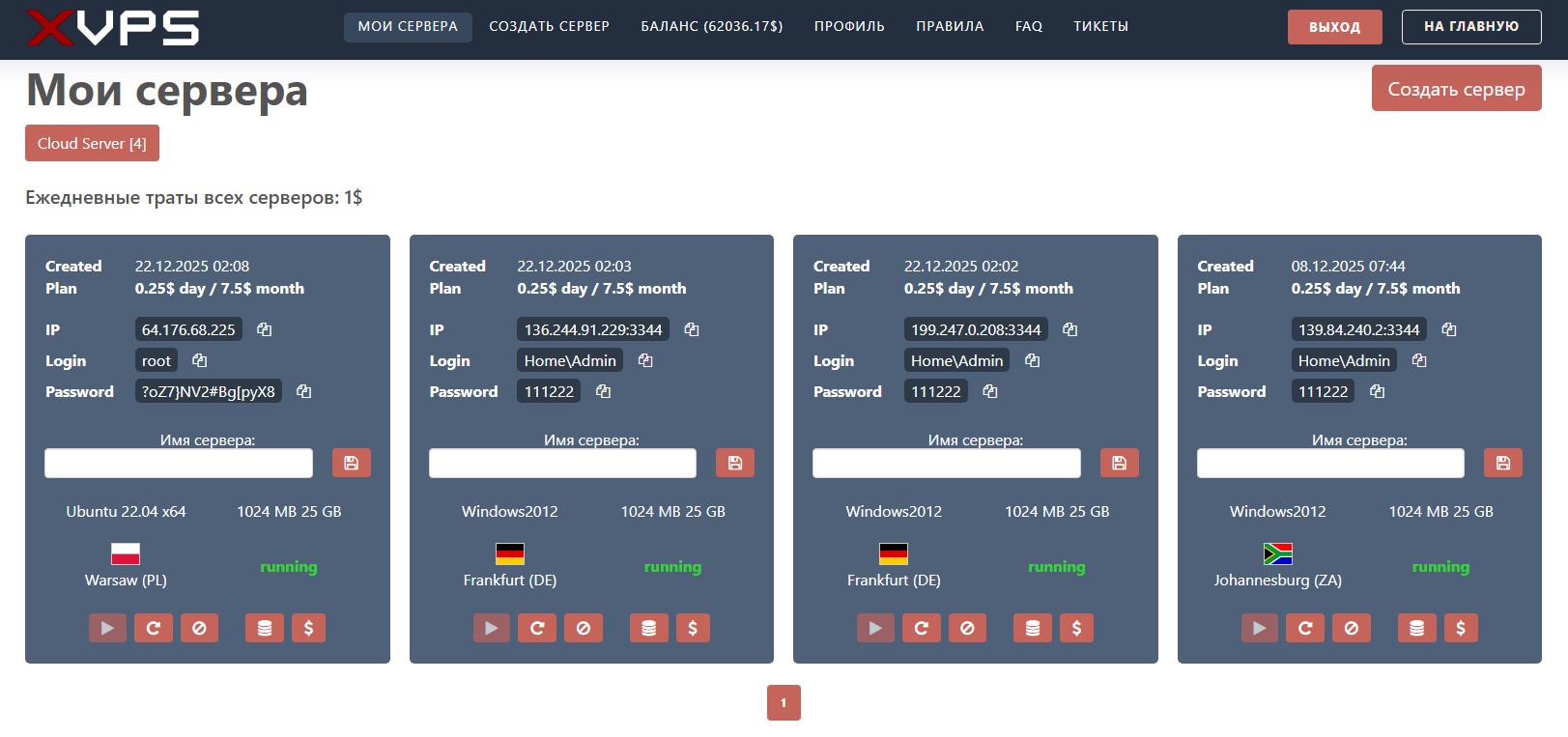 Наши услуги тарифицируются каждые 24 часа, а плата взимается только за фактически используемые ресурсы.